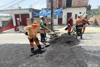 O prefeito de Manaus, David Almeida, e o secretário Municipal de infraestrutura (Seminf), Renato Junior, vistoriaram a erosão na rua Albânia.