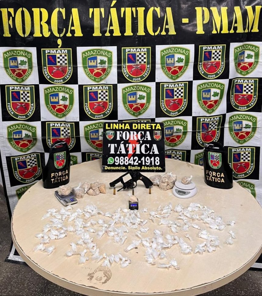 No interior da mochila, os militares encontraram um revólver, três munições calibre 38, 117 trouxinhas de oxi, além de 11 porções médias da mesma substância, totalizando aproximadamente 1,6 quilo de entorpecente. Também foram apreendidas três balanças de precisão utilizadas para o preparo e comercialização da droga. Todo o material ilícito foi apreendido e encaminhado ao 14º Distrito Integrado de polícia (DIP).