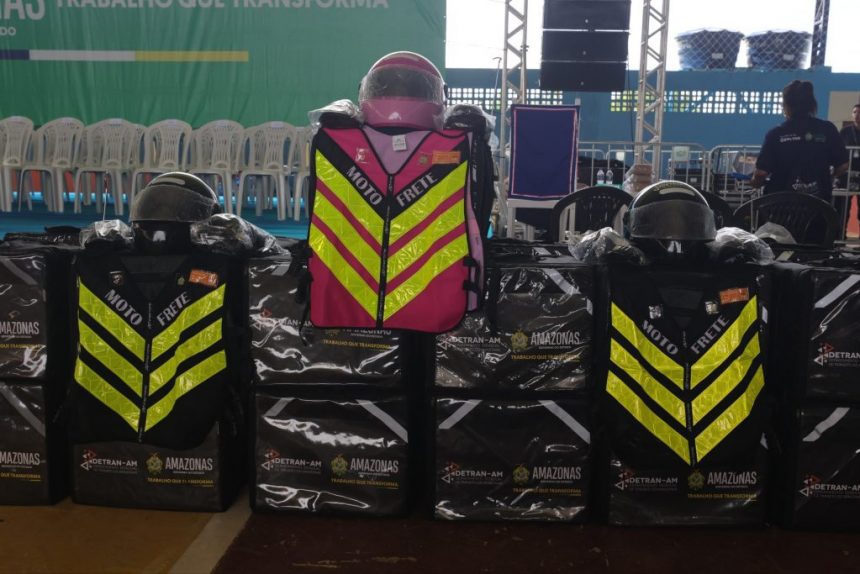 Durante as ações do Governo do Amazonas no município, no sábado (07/02), o Departamento Estadual de Trânsito do Amazonas (Detran-AM) entregou 25 kits de motofretista. Os kits incluem colete de identificação respirável, capacete, bag térmica para entregas, joelheiras, cotoveleiras e antena “corta-pipa”.