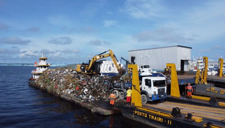A Prefeitura de Manaus, por meio da Secretaria Municipal de Limpeza Urbana (Semulsp), concluiu, nessa terça-feira, 14/4, o transbordo dos resíduos sólidos retirados da orla do rio Negro ao longo do mês de março. A operação, que totalizou 393,9 toneladas de lixo destinadas corretamente ao aterro sanitário municipal, foi realizada no porto Trairi, zona Oeste, como parte de uma estratégia permanente de limpeza e monitoramento das águas que banham a cidade, especialmente em áreas de grande fluxo de resíduos.