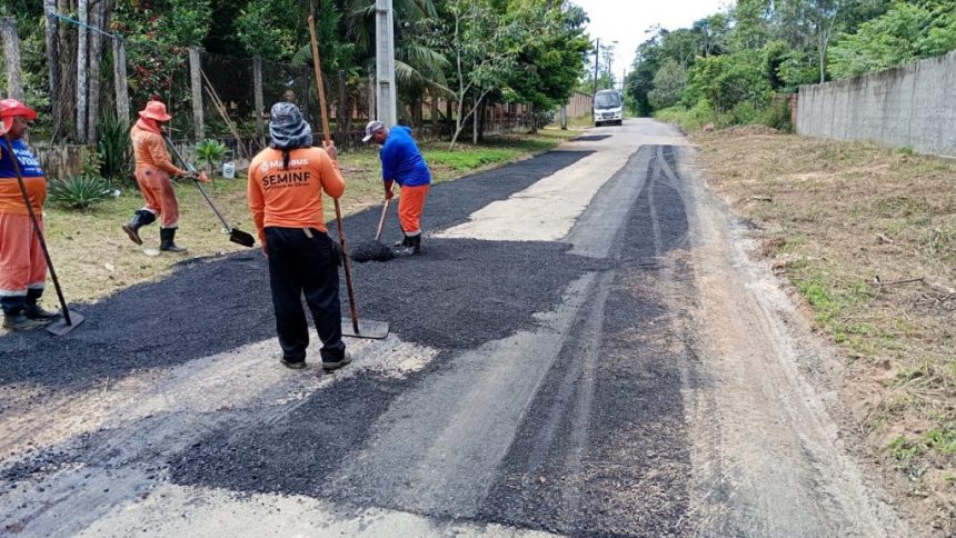 A Prefeitura de Manaus, por meio da Secretaria Municipal de infraestrutura (Seminf), intensificou, nessa quinta-feira, 16/4, os serviços de manutenção asfáltica na rua Rio Purus, no bairro Tarumã, zona Oeste da capital. A ação integra o cronograma contínuo de recuperação viária e atende pontos críticos da via, onde o desgaste do pavimento comprometia o fluxo de veículos.