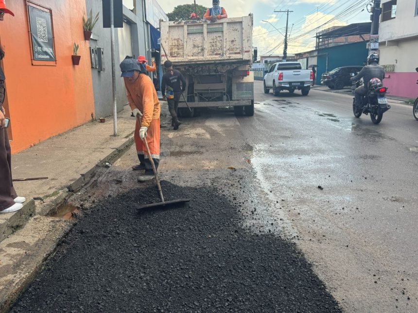 Prefeitura de Manaus realizou recomposição do pavimento em trechos deteriorados da avenida Peixe Cavalo.