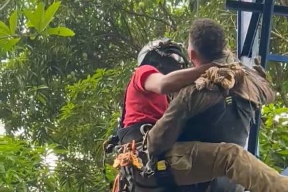 Bombeiros resgatam homens presos em caixa d’água a 20 metros de altura após intoxicação por solvente durante pintura