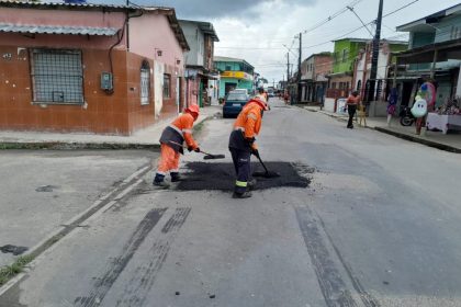 Prefeitura de Manaus realiza manutenção asfáltica em ruas do bairro Jorge Teixeira na zona Leste