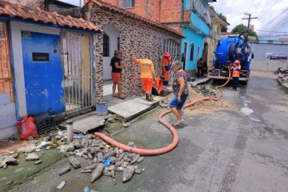 Prefeitura de Manaus remove resíduos da drenagem na rua Iemanjá e evita alagamentos no bairro Tancredo Neves
