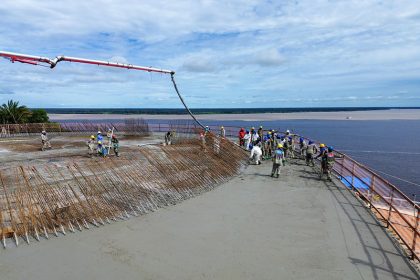 Concretagem da oca avança no parque Encontro das Águas Rosa Almeida em Manaus com 380 metros cúbicos de concreto