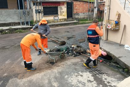 Prefeitura de Manaus realiza desobstrução de bueiros no bairro Redenção para evitar alagamentos