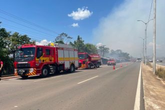 Em Iranduba, Corpo de Bombeiros combate incêndio em vegetação e impede propagação para residências