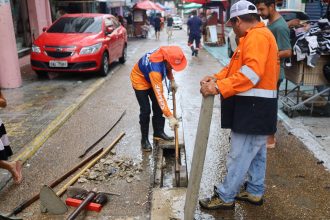 Limpeza de canaletas na rua Marechal Deodoro evita alagamentos no Centro de Manaus