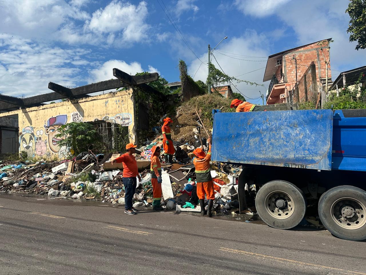 Força-tarefa da prefeitura elimina mais de 1,2 mil lixeiras irregulares em Manaus no primeiro mês de atuação