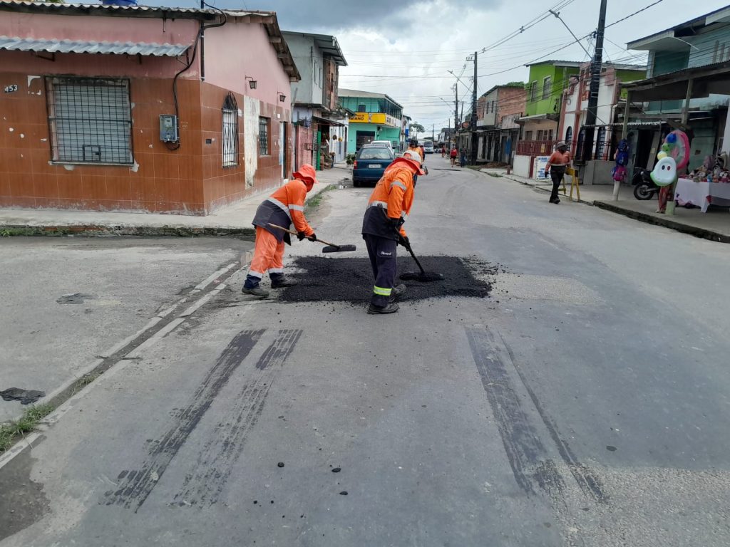 Prefeitura de Manaus realiza recuperação asfáltica na rua Bom Jesus em Zumbi dos Palmares